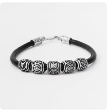 Кожаный браслет со славянскими шармами-оберегами (4мм)